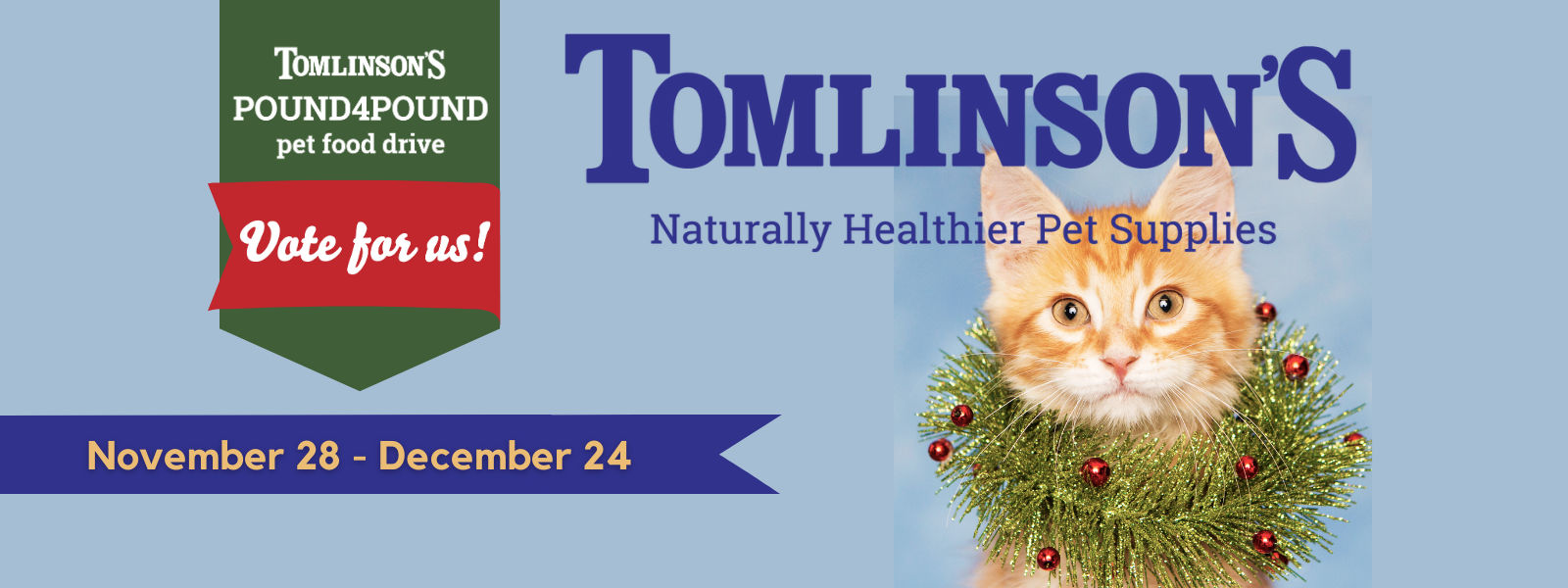 Visit www.tomlinsons.com or any Tomlinson’s storefront Nov 28th – Dec 24th and make your P4P donation to Thundering Paws.